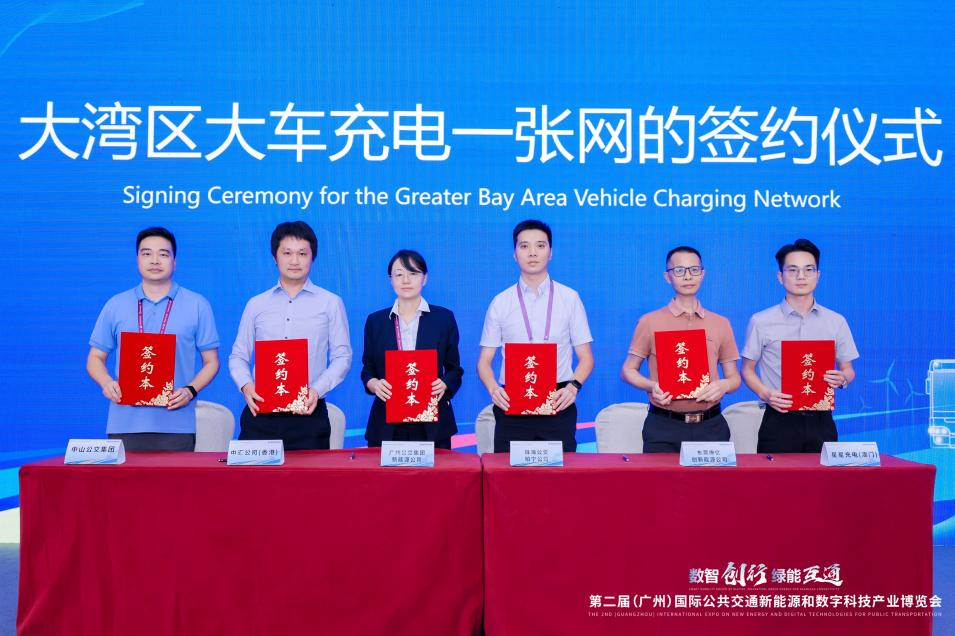本届博览会聚焦行业前沿,多项重磅发布和战略合作陆续揭晓,推动公共交通新能源与数字化发展进入新阶段。其中,粤港澳大湾区新能源充电设施一体化发展成为大会焦点。为实现区域绿色能源协同发展,加速充电“一张网”从构想落地为现实,展会现场举办了大湾区大车充电一张网签约仪式。中山公交集团副总经理冯嘉伟作为企业代表,与新能源公司、东莞康亿创、珠海柏宁出租车、(香港)中汇科技、澳门可持续发展协会等重要合作伙伴共同签署协议。此次合作突破传统城市级互联模式,是大湾区在绿色交通能源基础设施互联互通与标准协同方面取得的一项重要进展。各方将秉持资源共享、优势互补、合作共赢的原则,以科技创新驱动绿色出行,以开放协作助推行业高质量发展,共同推进充电服务网络的智能化升级与网络化布局,为构建世界级绿色智慧城市群、推动大湾区交通运输低碳转型注入新动力。