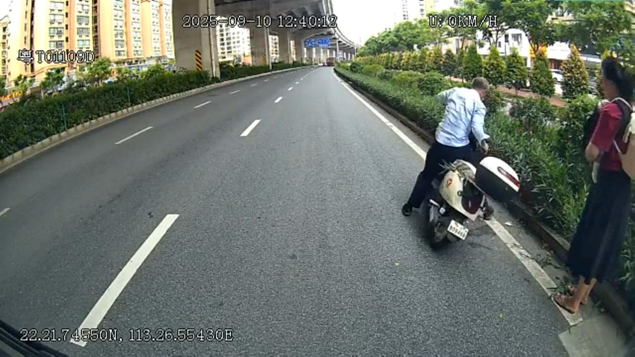 9月10日中午12时40分,坦洲车队驾驶员龙玉飞驾驶粤t01109d号公交车执行k15线路营运任务行至沙坦路时,发现一名女子抱着婴儿站在倒地的电瓶车旁焦急无措。龙师傅立即安全停车上前询问,得知电动车因失控撞向绿化带,女子因抱着婴儿无法扶起车辆。随后龙师傅立即帮忙扶起电动车、帮助拾起散落物品,并安抚受惊婴儿。在确认母子无恙后,他才返回车上继续投入营运。