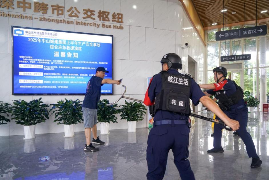 图为在深中跨市公交枢纽开展综合应急救援演练