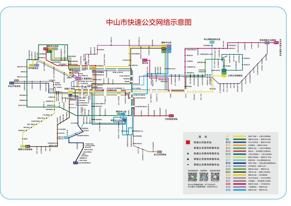 图为中山快速公交网络示意图