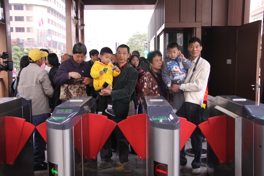图为中山快速公交示范线开通试运营时的热闹场景