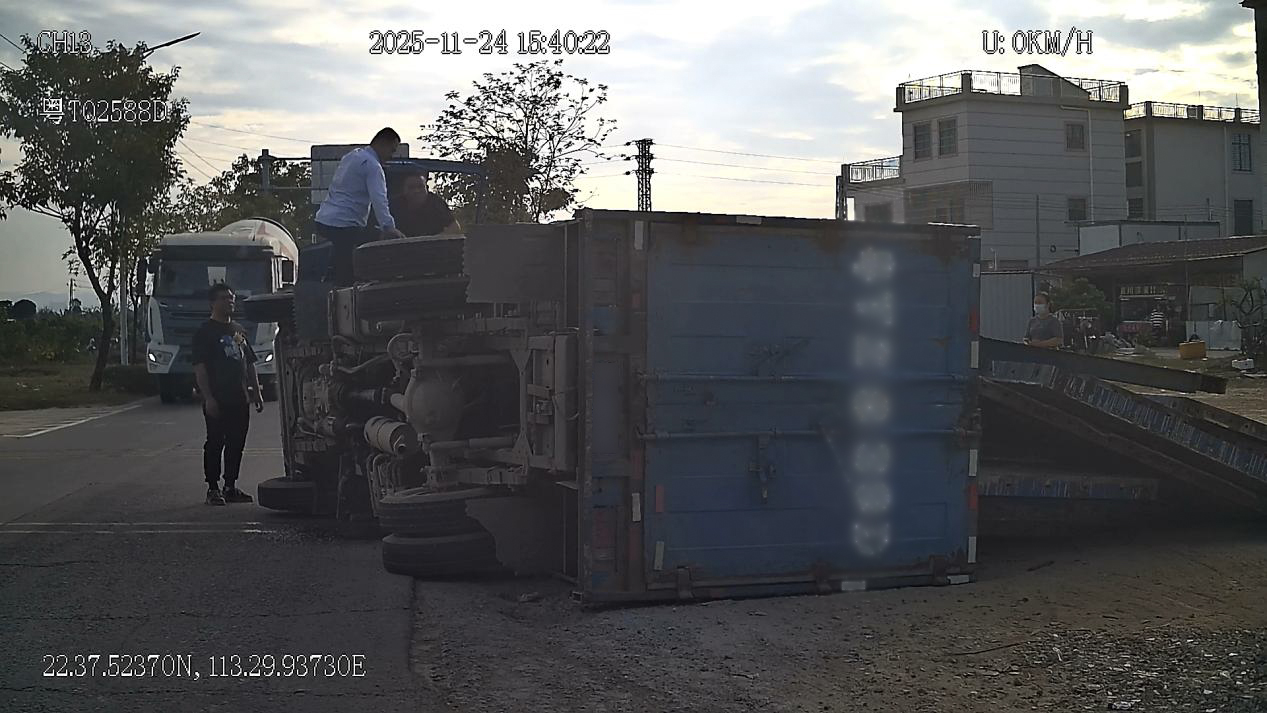 11月24日下午15时40分,民众车队驾驶员梁冰执行369线路任务行驶至新堤路口时,发现前方一辆货车侧翻,货车车主和随行人员被困。梁师傅立即安全停车并冲向事故现场,一边安慰被困人员,一边爬上侧翻车辆打开车门,成功帮助两人脱困。在确认伤者仅受擦伤后,他才默默返回车厢继续营运。