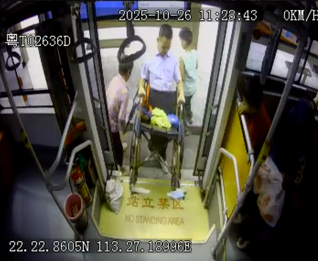 10月26日11时23分,三乡车队驾驶员冼祖旺在执行998线路营运任务行至雍陌站时,注意到一位拄拐杖的老人和推轮椅的小朋友因行动迟缓未能及时上车。已启动车辆的冼师傅立即二次停靠,发现老人行李繁多、行动艰难,孩子正努力尝试将轮椅搬上车。他当即停车相助,将轮椅稳妥安置。这暖心一幕赢得车内乘客纷纷点赞,更有热心乘客主动帮老人整理散落物品。