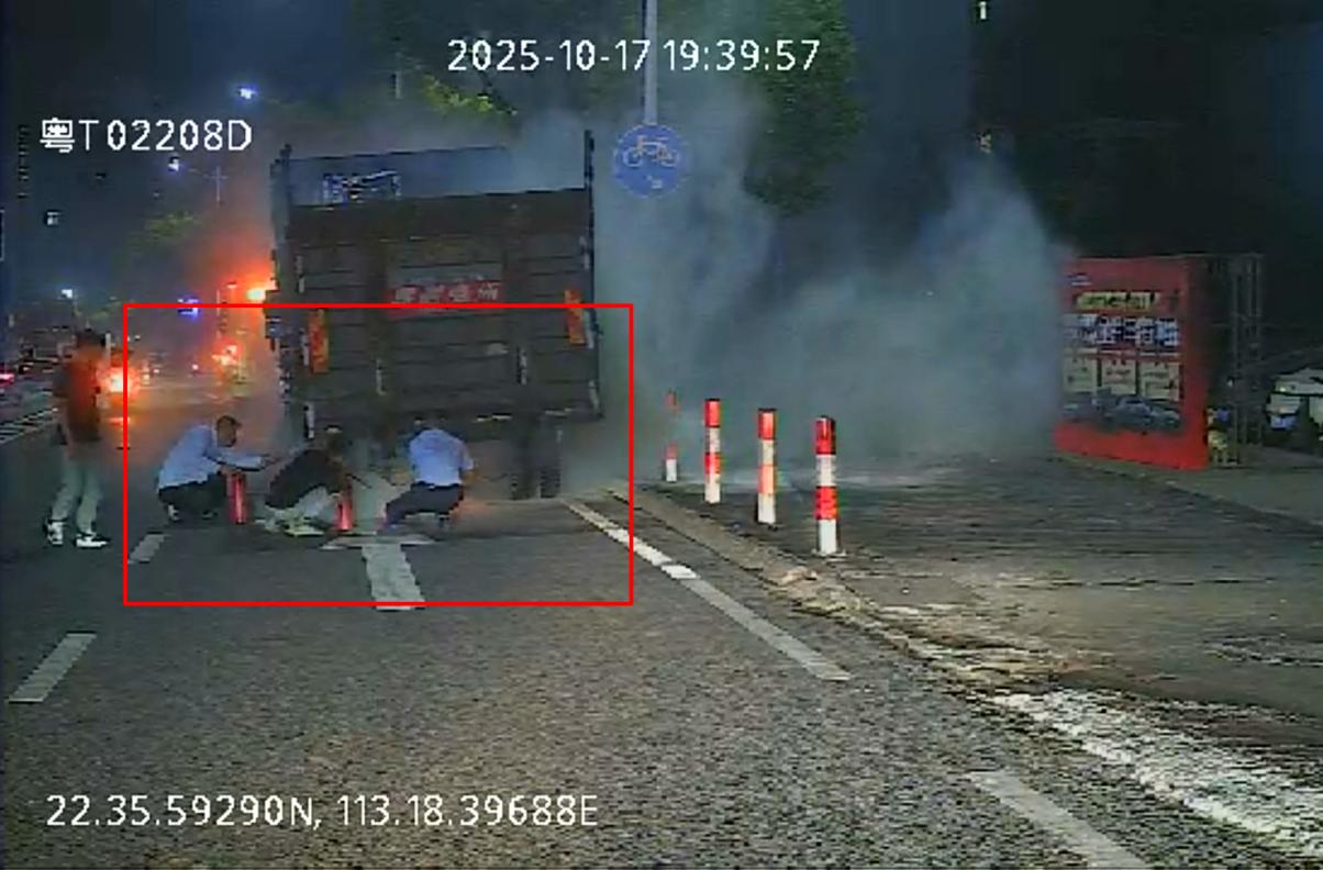 同日19时39分,城西车队228路驾驶员李宏轩途经105 国道坦背西二马路路段时,发现前方货车底部冒出浓烟并伴有火光,车主正焦急无助。李师傅迅速停车取出车载灭火器冲向现场,熟练对准火源扑救。此时,城南车队k20路驾驶员冯庆棠和在旁的市民也加入救援。首支灭火器用尽后,李师傅和冯师傅分别折返车内取来第二支灭火器,最终众人协力将火扑灭,在确认无复燃风险后,两位驾驶员才安心离开。