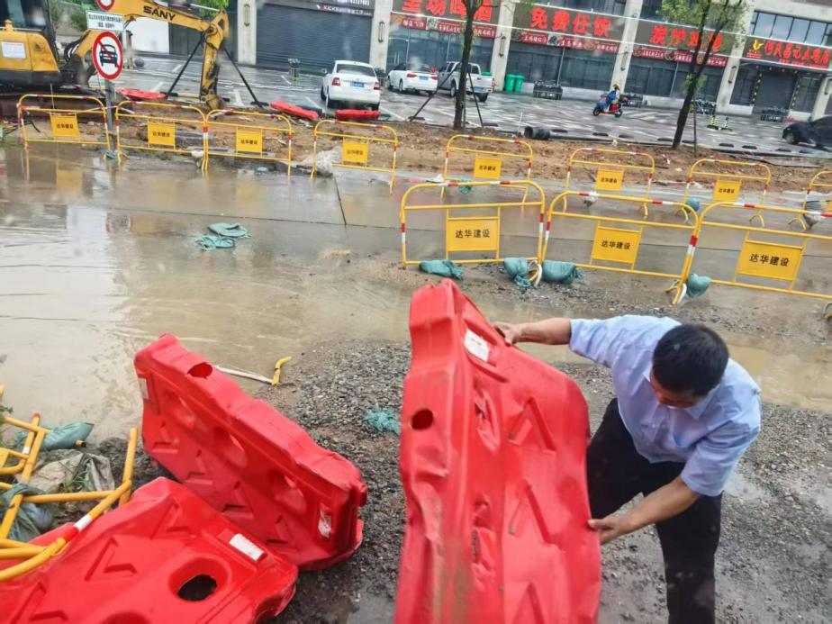 图为驾驶员农大庆帮助女车主将电动车移到安全区域