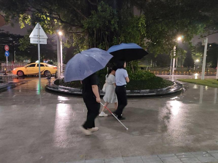 据了解,当天19时20分左右,从深圳前海湾发往中山博览中心公交枢纽的深中跨市公交车安全靠站,两名视障乘客结伴下车。刘芳发现两人没有其他人员陪同后,便急匆匆的赶上前了解情况。经询问,得知两名视障乘客需要换乘公交车到横栏四沙路口公交站。此时正值大雨,考虑到乘客的不便,刘芳二话没说,搀扶好其中一名女乘客,并让另一名男乘客紧跟其后,一同前往博览中心公交站(北)转乘公交车。