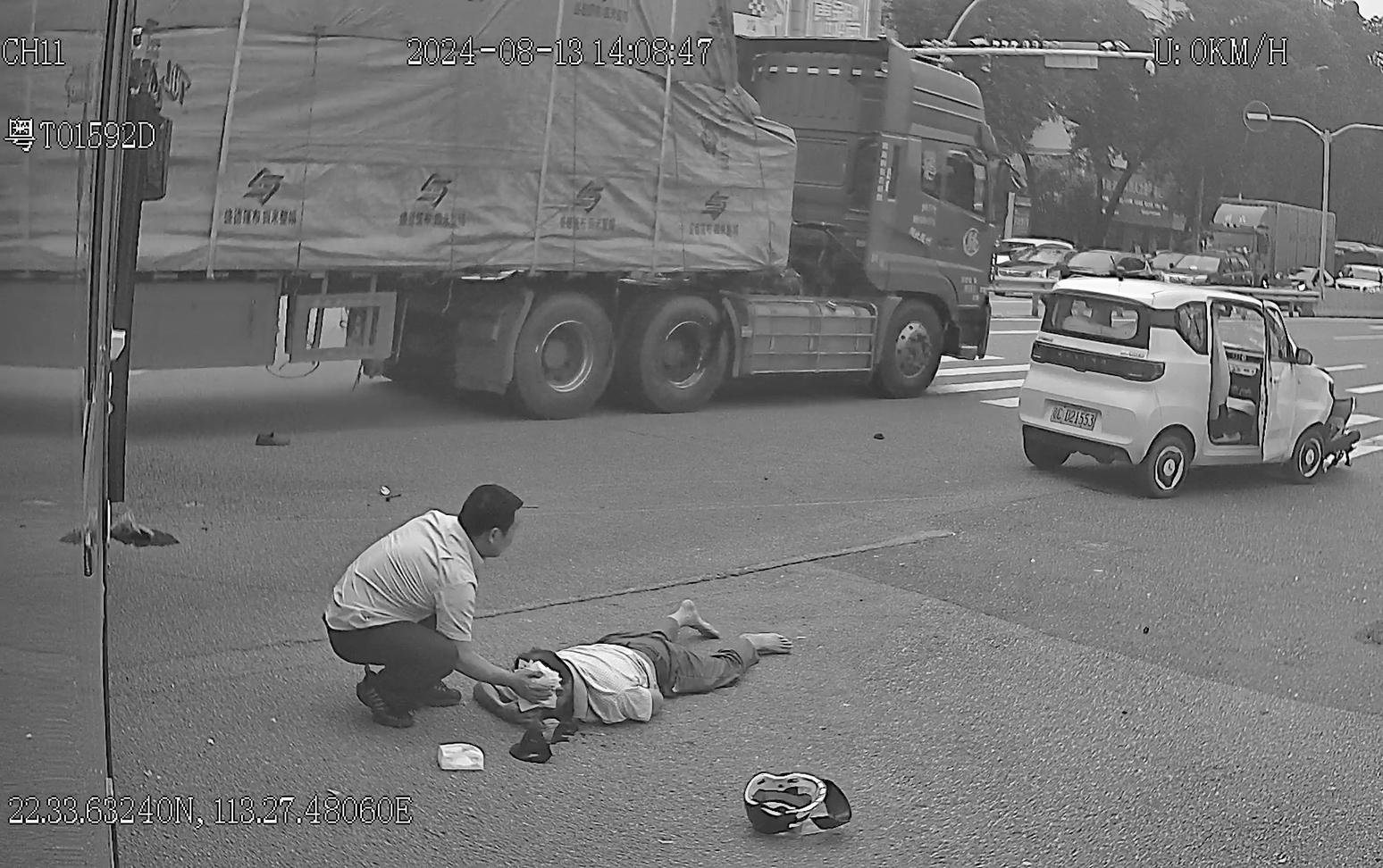 8月13日下午,公交集团火炬开发区车队驾驶员刘健正执行068线路的营运任务,从翠湖公园开往城轨中山站方向。14时05分,当车辆行至中山港壹加壹路段火炬路与中山港大道红绿灯交叉路口处时,只见交叉口处突发交通事故,一辆电动小轿车和摩托车相撞,摩托车主被撞倒在地,情况危急!刘师傅见状后立即将车辆开到伤者前面作挡护,防止伤者受到二次伤害,随后立即下车查看伤者情况。走近发现伤者头部流血,脸部擦伤严重。刘师傅先是拨打120和110,并从车上拿上纸巾为伤者止血,旁边路过的市民也过来帮忙。在等待救护人员的过程中,刘师傅一直守候在伤者身旁,时刻留意伤者的状况。14时11分,警察和救护人员陆续赶到现场,待确认伤者被安全地抬上救护车之后,刘师傅才放心返回工作岗位,继续公交线路营运。