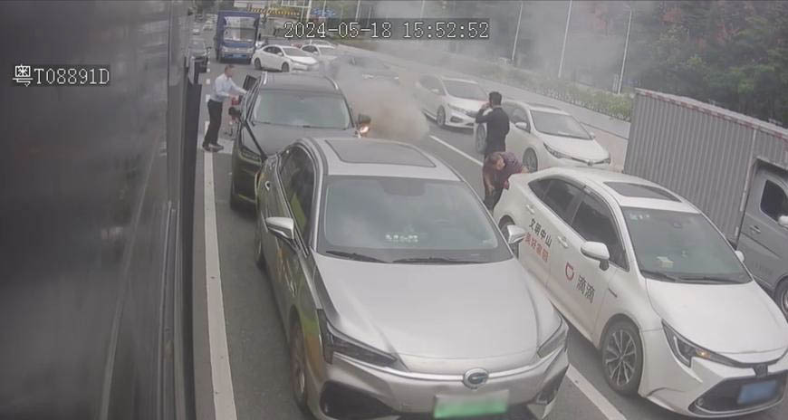 路遇冒烟车辆,公交驾驶员们协力救火