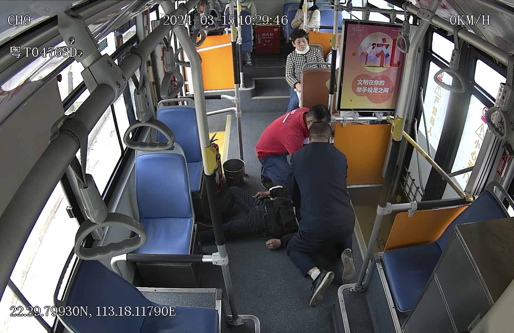 当天上午,公交集团城西车队驾驶员冯永成驾驶粤t04768d号公交车执行048路线营运任务,由大涌客运站出发,开往人民医院。10时27分,公交车行驶至凤凰路北路段时,冯师傅听到车厢内传来了一阵急促的呼喊声,随即将车辆安全停靠,打开双闪和拉手刹,迅速跑往车厢了解情况。上前查看发现一名乘客突发抽搐晕倒,脸色苍白,全身僵硬,意识模糊。冯师傅意识到情况的严重性,立即让在旁乘客拨打120求助,接着与在旁乘客一起对患病乘客进行心肺复苏。为其争取了最佳的抢救时机。经过三分钟的救援,患病乘客终于有了意识。