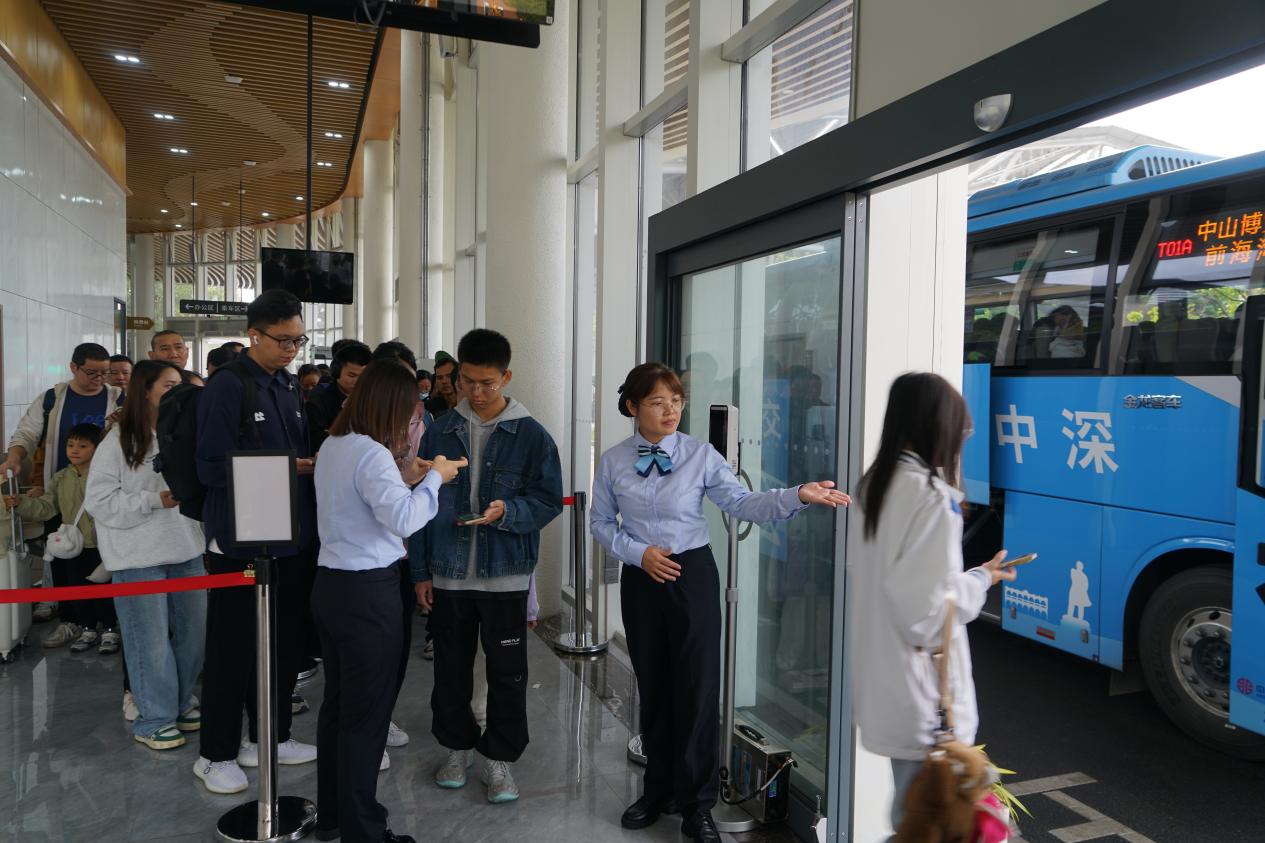 春风拂槛,繁花灿烂。在深中跨市公交博览中心公交枢纽,许多深圳市民选择乘坐深中跨市公交到中山踏青。“最近天气特别好,就想假期跟家人来中山金钟湖踏青游玩。”深圳市民刘女士表示,节假日车位不好找,他们到了博览中心就能坐上到景区的公交车,非常方便。