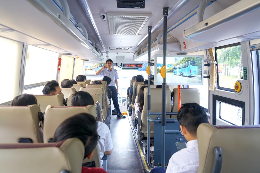 培训活动上,首先由中山公交集团相关工作人员围绕深中跨市公交营运服务、媒体宣传工作等内容,向学员们分享在实践中的经验做法。随后,组织学员们前往深中跨市公交博览中心公交枢纽、中山翠亨新区规划馆数字化展厅进行实地考察,并乘坐深中跨市公交车,亲身体验车辆的舒适与快捷。通过沉浸式参观学习,不仅让学员们对深中跨市公交的运营情况有了更深入的了解,也让他们对公共交通在现代城市规划和发展中的重要性有了更加直观的认识。