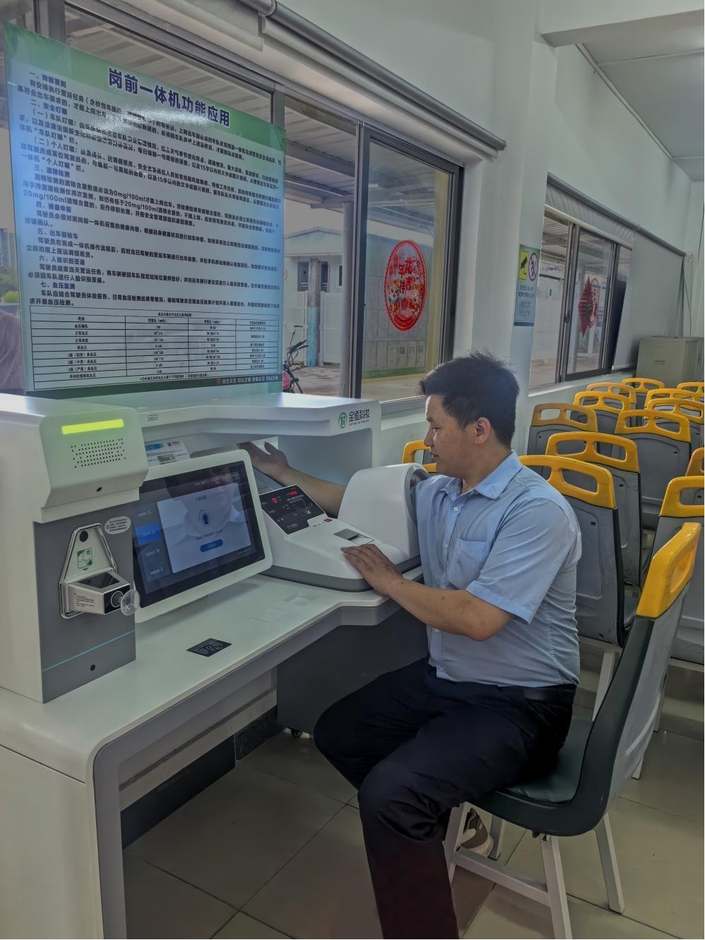 4月4日凌晨五点半,当市民还在梦乡之中,公交人已经开始了一天的忙碌。驾驶员朱峰来到车队走到岗前一体机前,进行人脸识别签到、酒精及血压测试等岗前安全监测。机器提示一切正常后,他来到公交站场,认真做好车辆检查、清扫等工作,确保车辆安全、卫生。