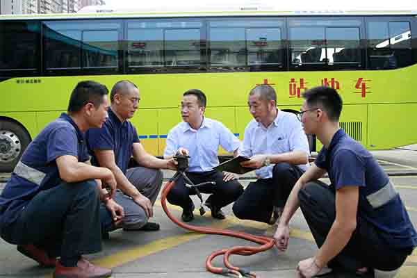 中山公交集团经验丰富的老师傅正在向新公交人传授经验和技能