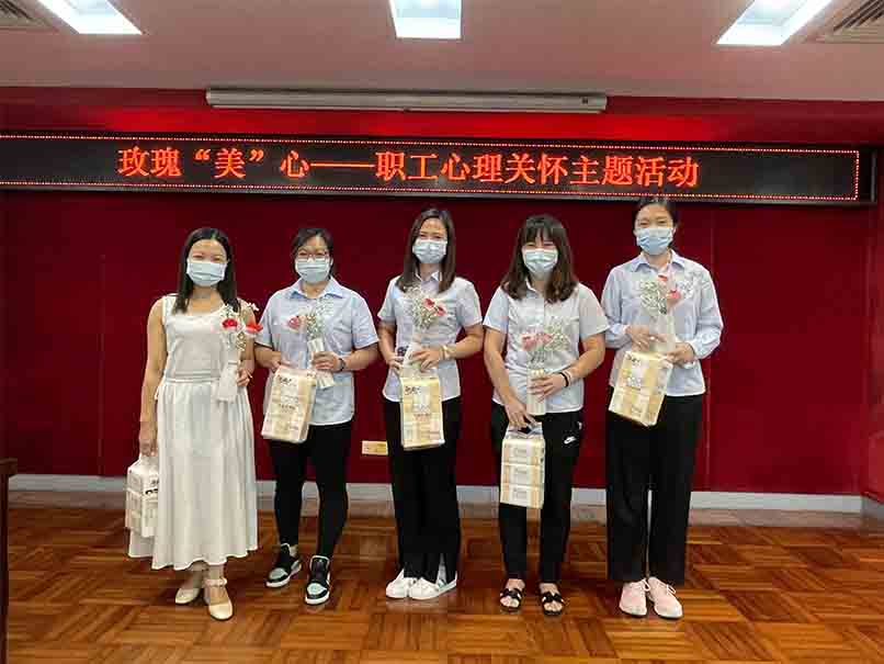 为持续做好员工关怀工作,进一步提升员工心理健康素质,6月21日集团工会联合中山市工会社工综合服务中心举办了“我的情绪我做主”之“玫瑰‘美’心”主题女职工心理关怀活动。此次活动共分为两个环节,分别是“以花喻人”暖场环节和“赠人玫瑰,手留余香”环节。活动过程中,以园艺、手工、艺术、文化为媒介,以分享快乐和传递幸福为主旋律,通过融入积极的“乐心”体验环节,引导职工学习心理健康知识,帮助职工成为高效能生活与工作的主人。