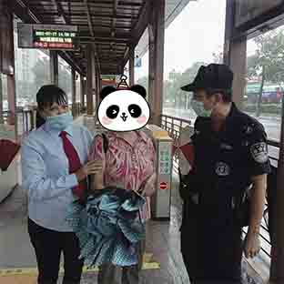 图为站务员余玲玲帮助迷路老人回家
