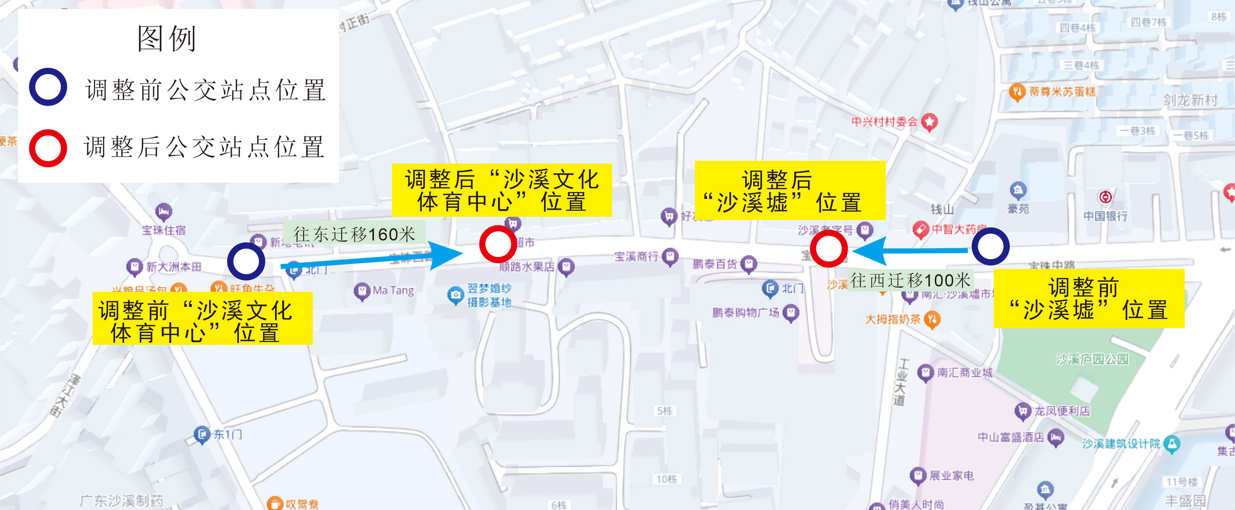 “沙溪墟”“沙溪文化体育中心”站(往沙溪达德路方向)调整位置示意图