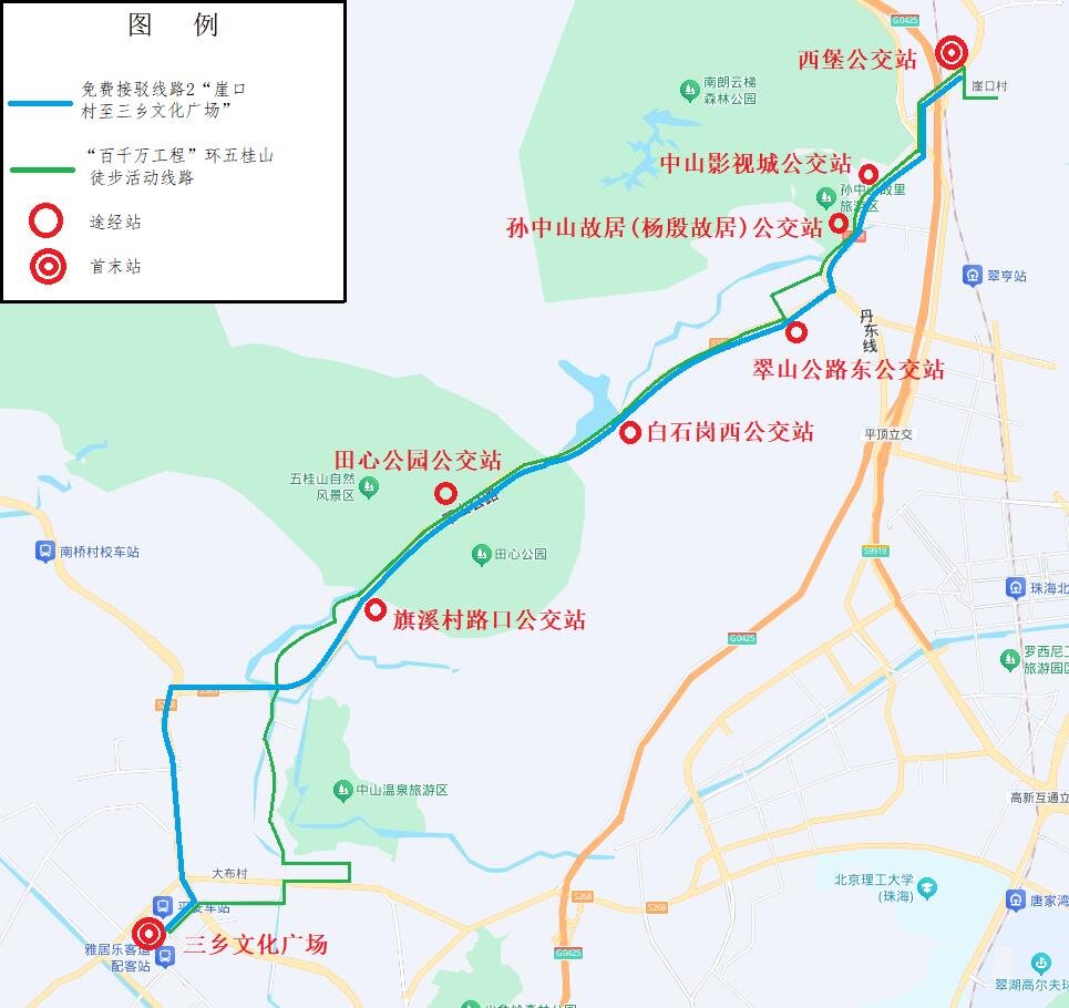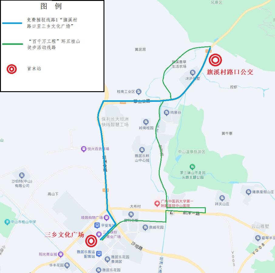 2. 停靠站点:“旗溪村路口”站直达三乡文化广场,中途不停站。