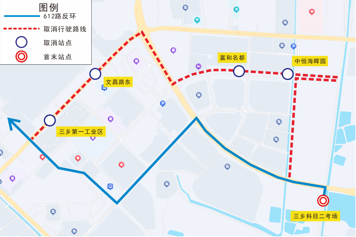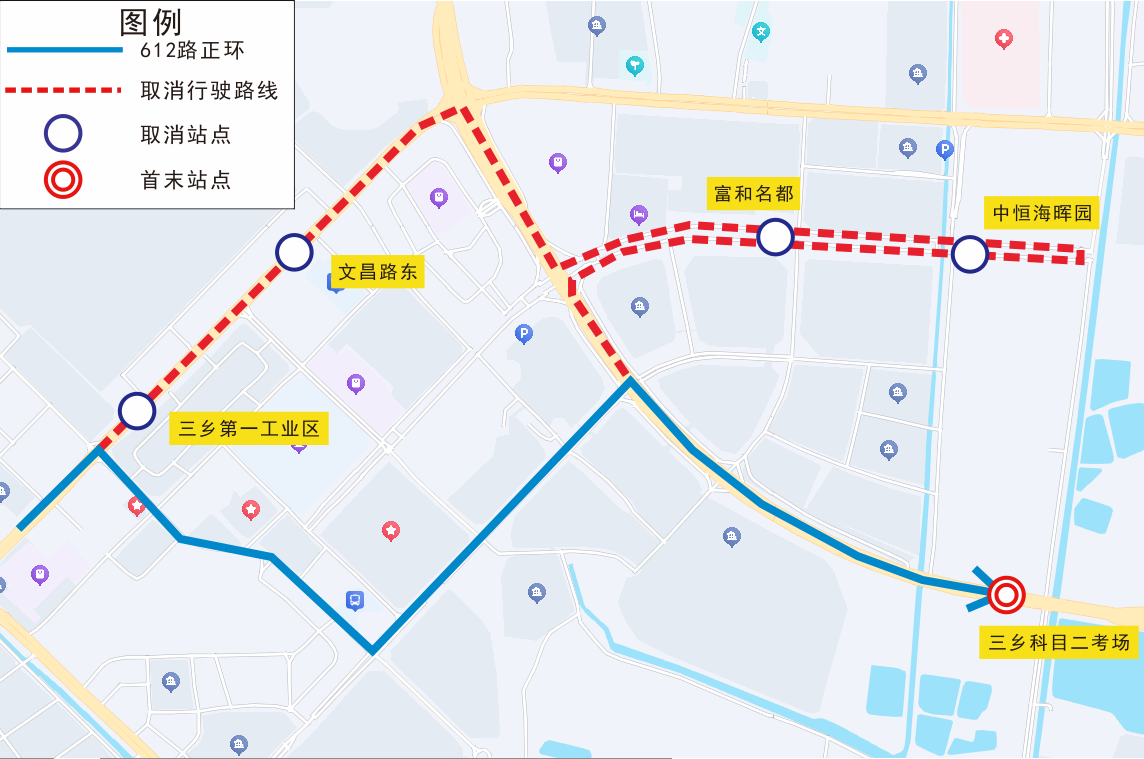 公共汽车612路调整示意图