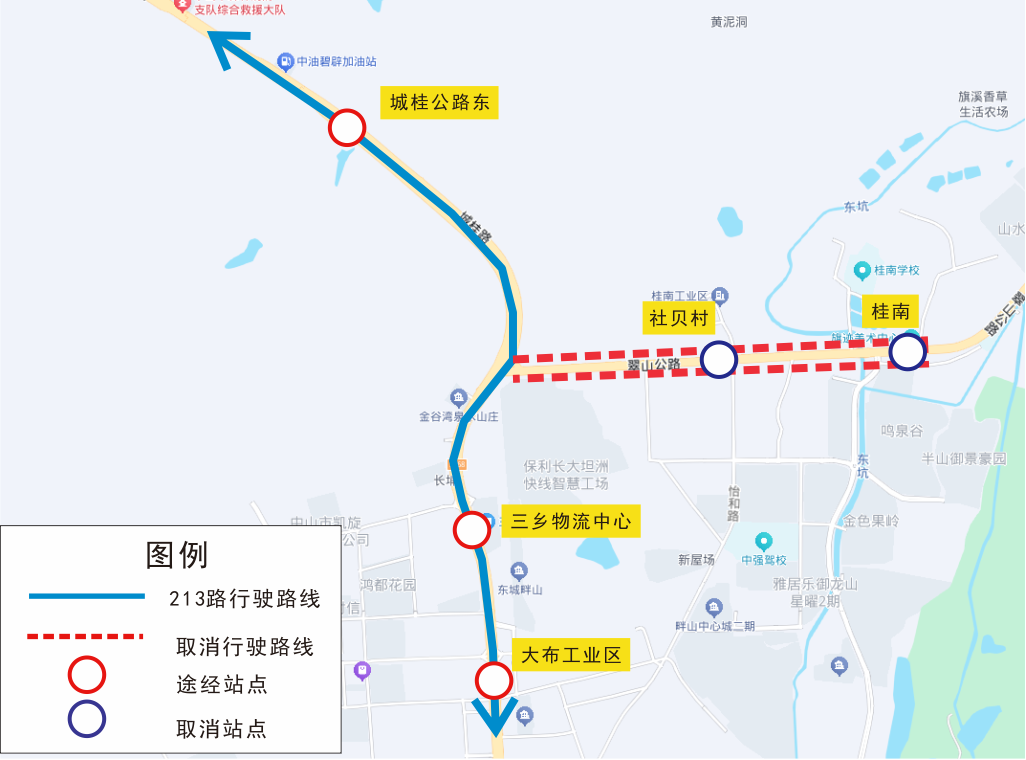 | 603 | 双向 | 三乡镇政府、顺昌购物广场南、富和名都、中恒海晖园 |