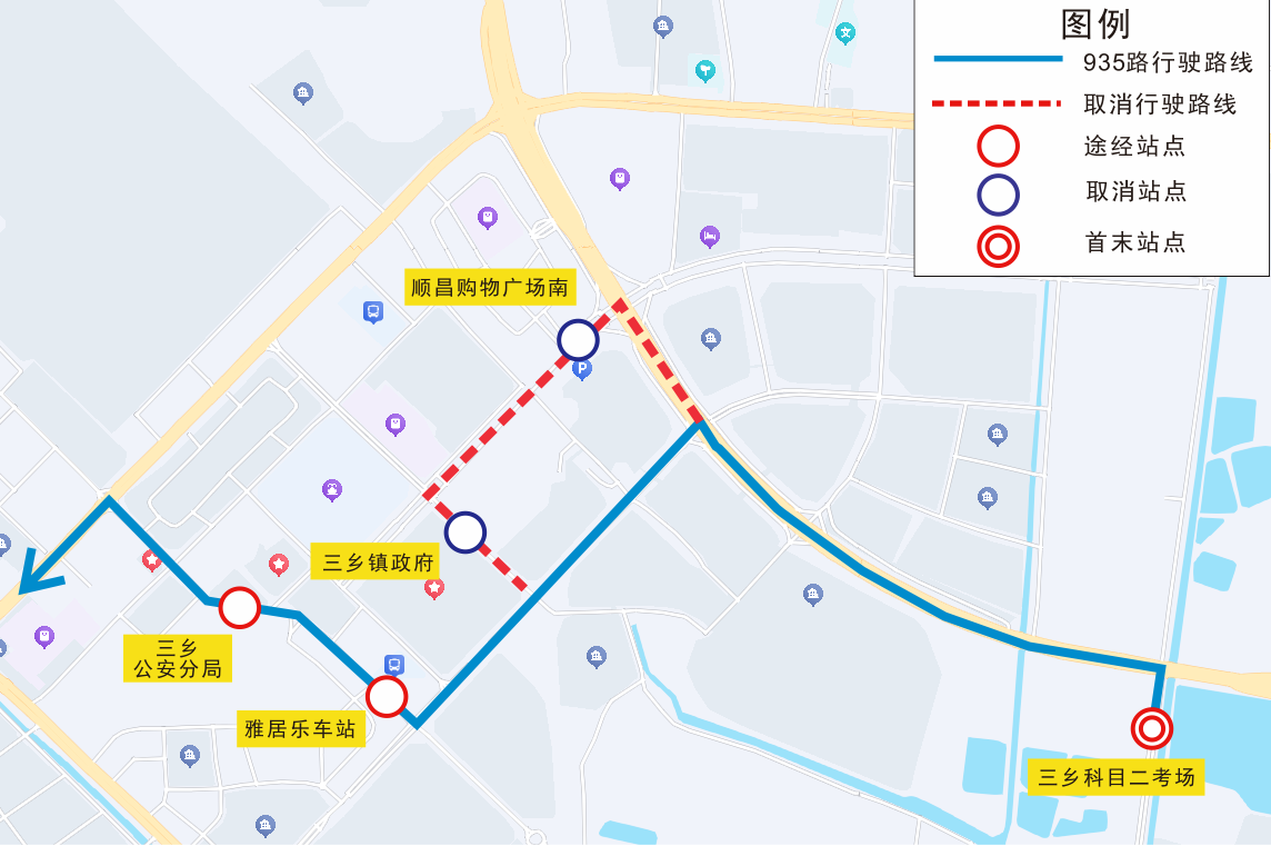 | 935 | 双向 | 三乡镇政府、顺昌购物广场南 |