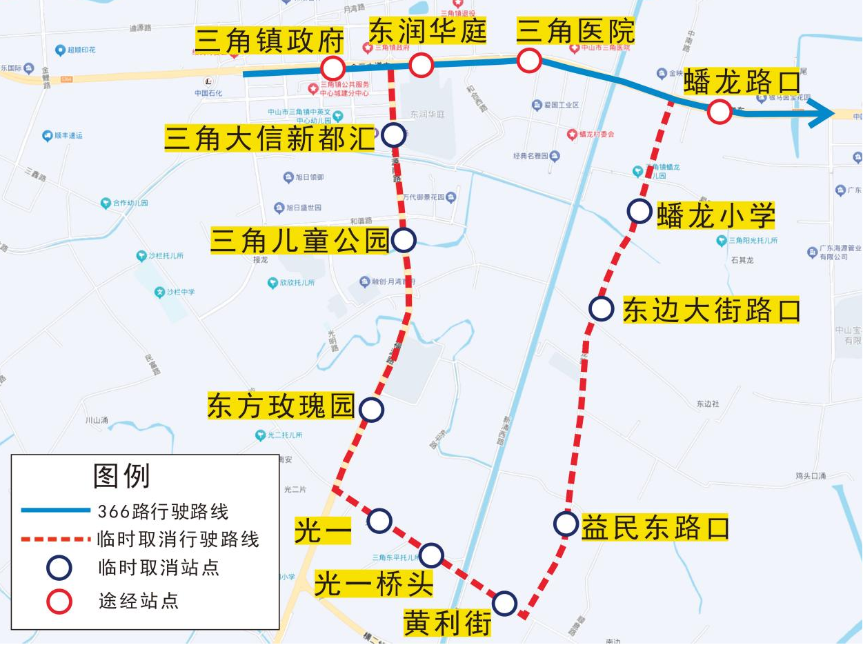 受三角镇南三公路辅路围蔽施工的影响,即日起,公共汽车366路往沙仔新市场方向临时取消福源路、沙栏西路、蟠龙路路段行驶,具体情况如下: