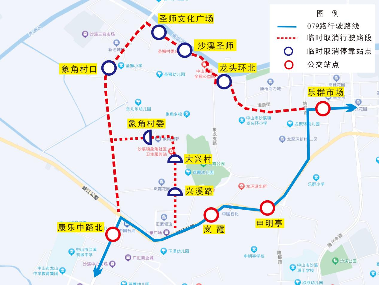 受“沙溪三月三”巡游活动交通管制的影响,2026年4月19日上午9时至巡游活动结束,公共汽车079路临时取消沙溪圣狮村海傍街部分路段行驶,具体情况如下: