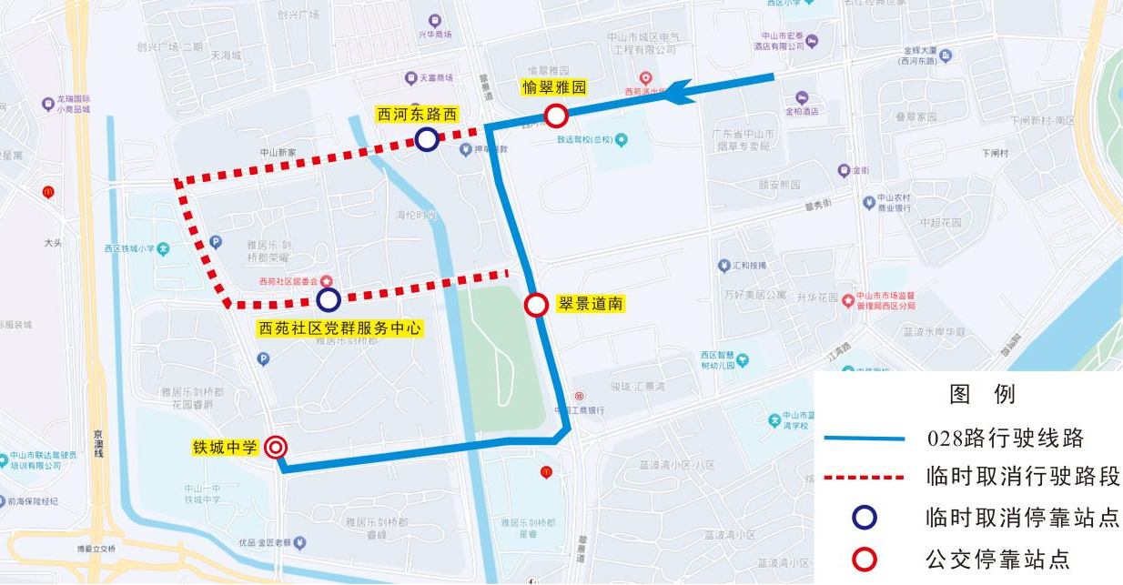 受西区街道西苑社区中心周边路段围蔽施工的影响,即日起,公共汽车028路往铁城中学方向临时取消停靠“西河东路西”“西苑社区党群服务中心”站。原在“西河东路西”站下车的乘客请提前在“愉翠雅园”站下车,在“西苑社区党群服务中心”站下车的乘客请在“翠景道南”站下车。