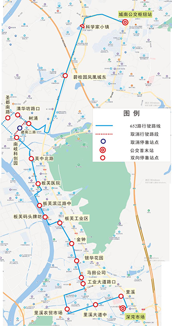 城南公交枢纽站、良都小学、福涌东、兴福路、西环三路口、寮后、西环四路、金溪、新凤环、微观科技、清匠电器科技园、圣都南路口、南岐科创园、板芙医院。