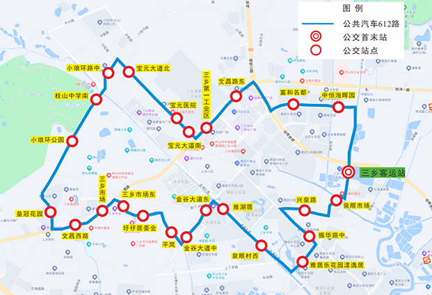 一、途经道路 登贤路、兴泉路、振华路、金涌大道、金谷大道、新下冲路、环镇路、文昌西路、小琅环路、宝元大道、文昌东路、沙坦路、谷都大道、鸦岗大街、鸿埠园路、振兴路 二、服务站点 1.定点定班发车模式三乡客运站、泉眼市场、兴泉路、振华路中、雅居乐花园漾逸居、泉眼村西、雅湖居、金谷大道东、金谷大道中、平岚、圩仔居委会、三乡市场东、三乡市场、文昌西路(平安街口)、皇冠花园、小琅环公园、桂山中学南、小琅环路中、宝元大道北、宝元医院、宝元大道南、三乡第一工业区、文昌路东、富和名都、中恒海晖园