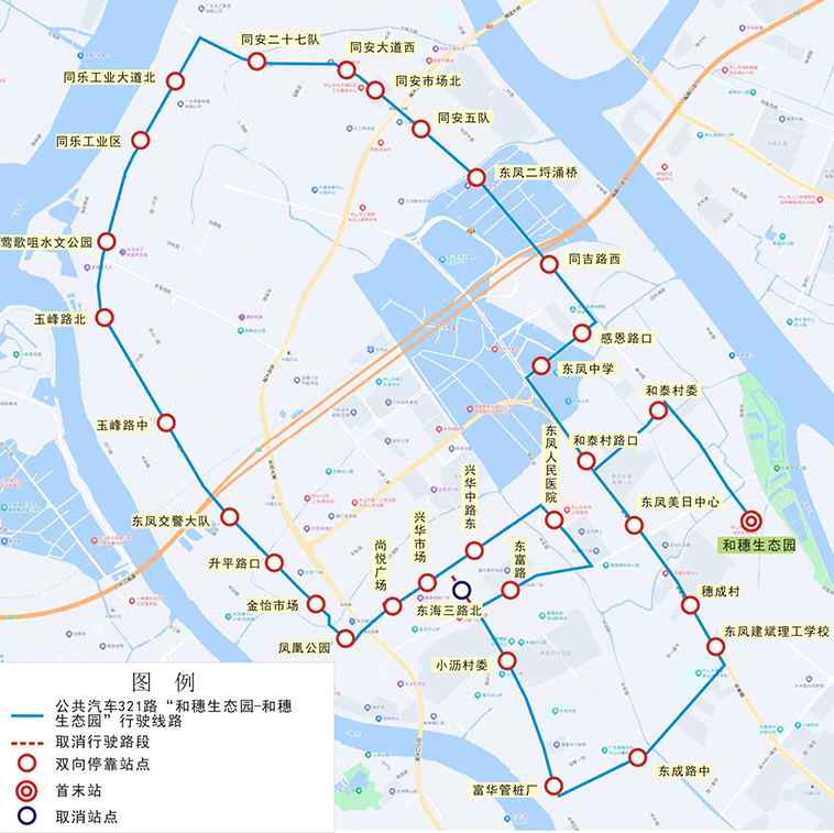 一、优化调整公共汽车321路线“和穗生态园-和穗生态园”