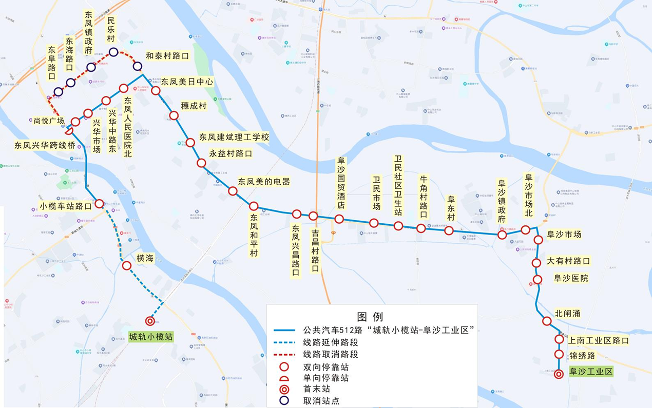 为进一步扩大公交服务覆盖范围,方便群众公交出行,我公司拟优化调整公共汽车512路线为“城轨小榄站-阜沙工业区”。具体情况如下: