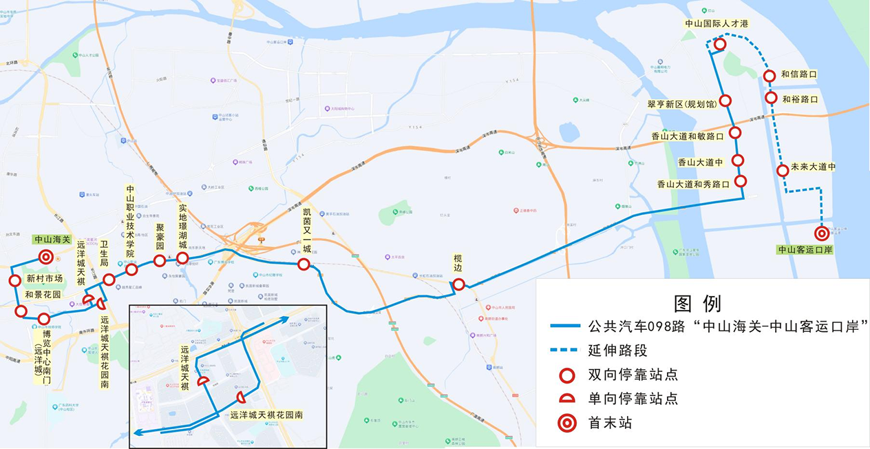 二、公共汽车098路线延伸为“中山海关-中山客运口岸”