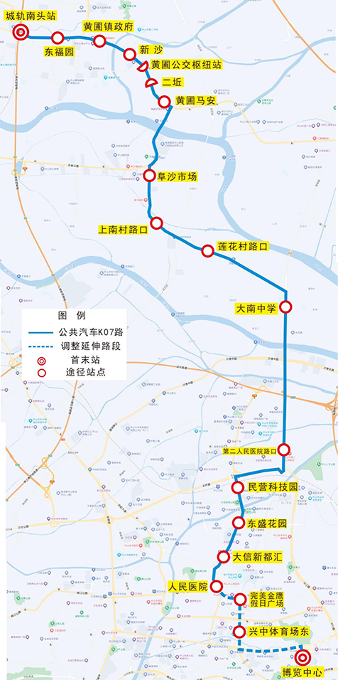 三、优化调整k07路为“博览中心-城轨南头站”