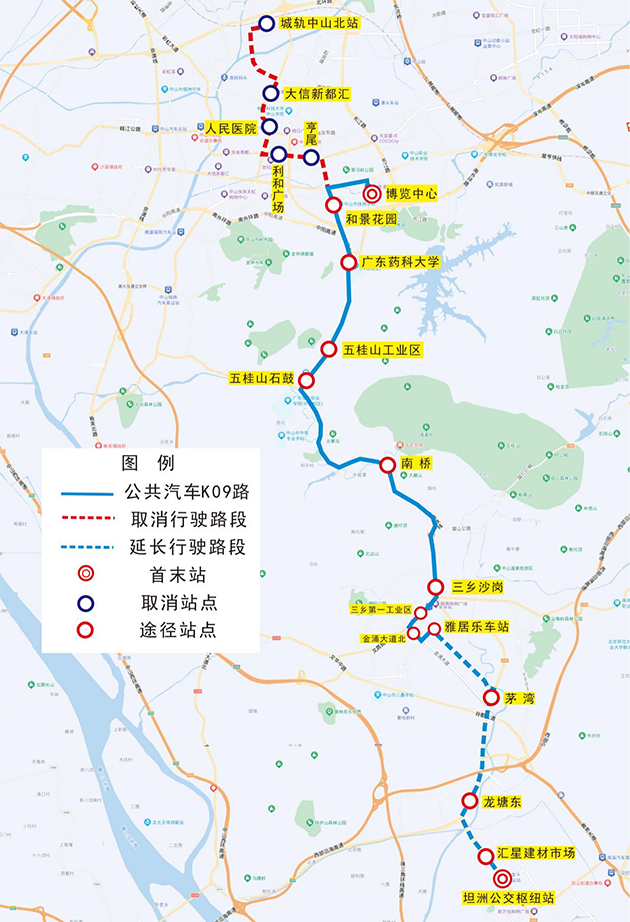 四、优化调整k09路为“博览中心-坦洲公交枢纽站”