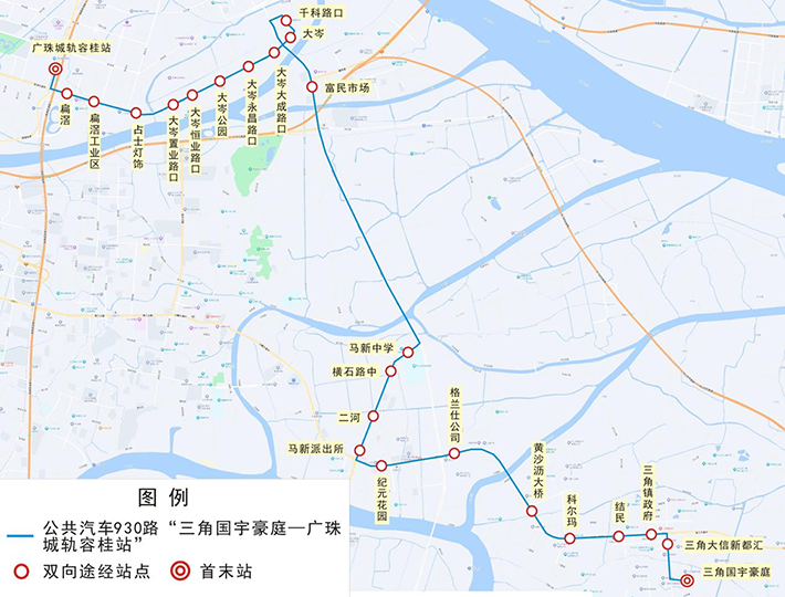 一、新开通公共汽车930路“三角国宇豪庭—广珠城轨容桂站”