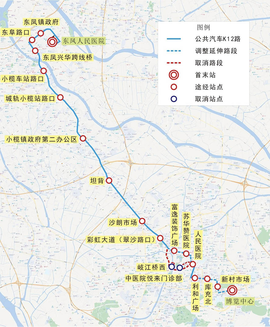 三、优化调整k12路为“博览中心-东凤人民医院”