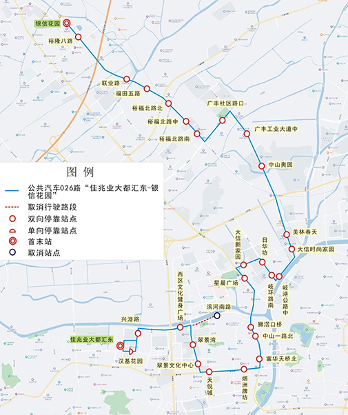 为进一步扩大公交服务覆盖范围,方便群众公交出行,全面推进“百千万工程”,我公司拟优化调整公共汽车026路线为“佳兆业大都汇东—银信花园”。具体情况如下: