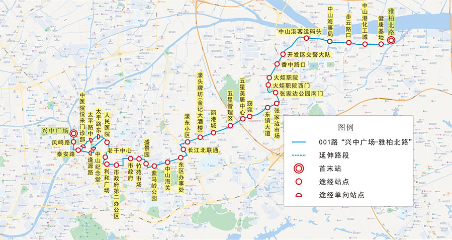 为助力中山文旅服务高质量发展,利用公交优势资源推动中山产旅融合,同时反哺提升公交客流,我公司拟优化调整公共汽车001路线为“兴中广场—雅柏北路”。具体情况如下: