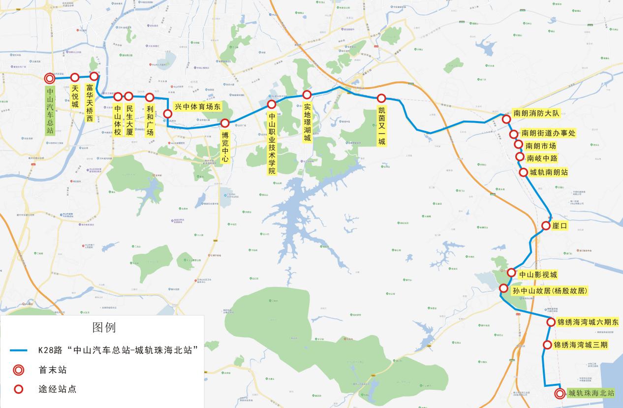 (一)优化整合公共汽车k16、k28路,新线路调整为k28路“中山汽车总站-城轨珠海北站”;