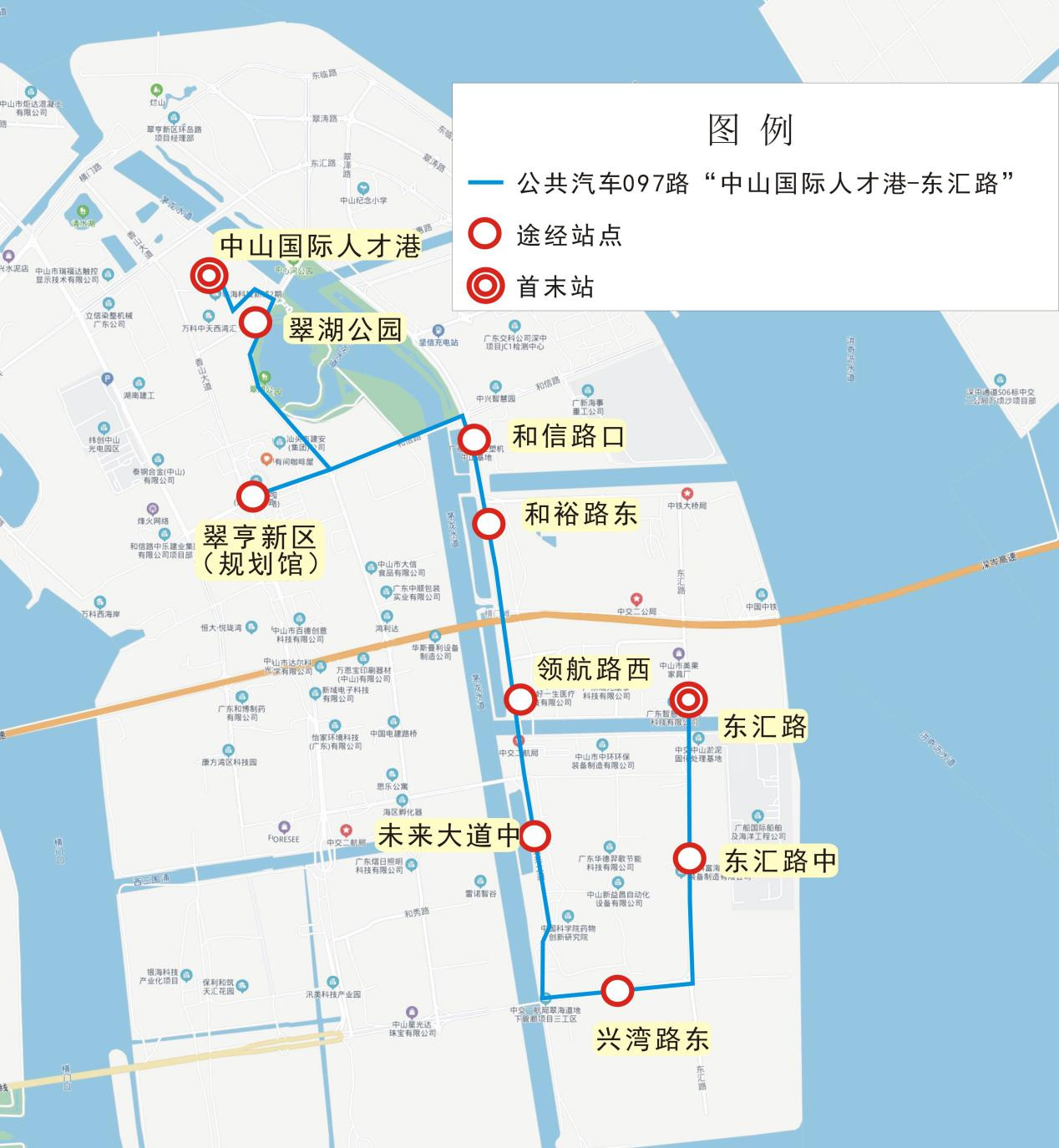 为进一步完善翠亨新区(含南朗街道)的公交线网,方便群众公交出行,我公司拟开通公共汽车097路线“中山国际人才港-东汇路”。具体情况如下:
