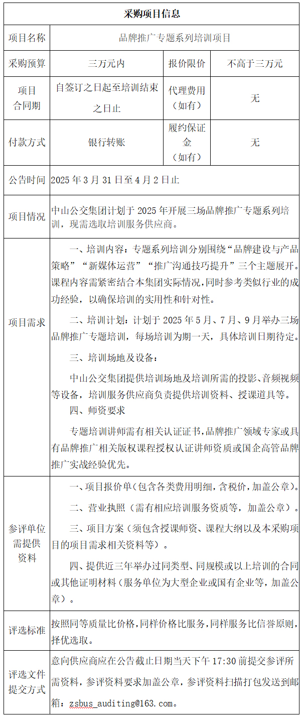中山市公共交通运输集团有限公司品牌推广专题系列培训项目