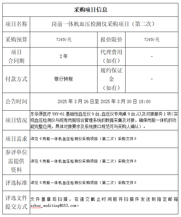 中山市公共交通运输集团有限公司岗前一体机血压检测仪采购项目(第二次)