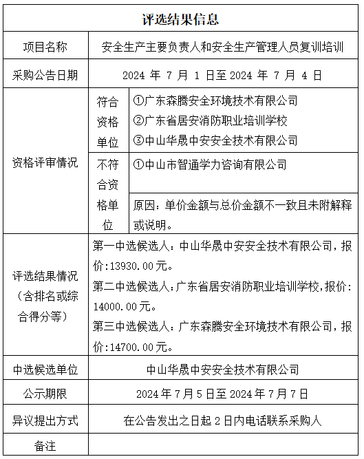 中山市公共交通运输集团有限公司安全生产主要负责人和安全生产管理人员复训培训项目评选结果公示