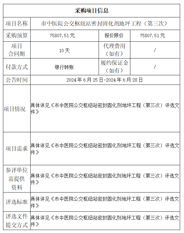 市中医院公交枢纽站密封固化剂地坪工程(第三次)(评选文件)