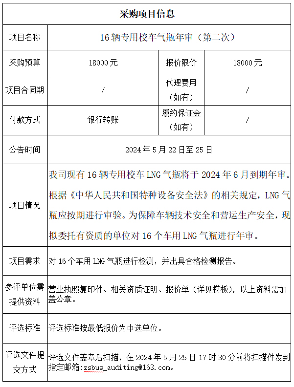 中山市公共交通运输集团有限公司16辆专用校车气瓶年审(第二次)