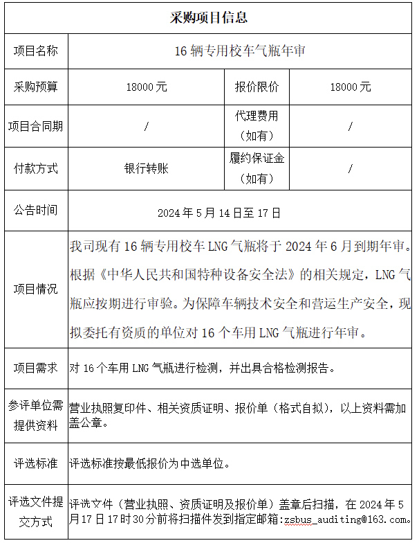 中山市公共交通运输集团有限公司16辆专用校车气瓶年审