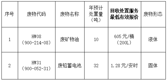(二)本项目废矿物油和废铅蓄电池的处置数量为预测值,实际处置数量以我司生产实际为准,我司有权根据实际需要对本项目各类危险废物数量作增加或减少。