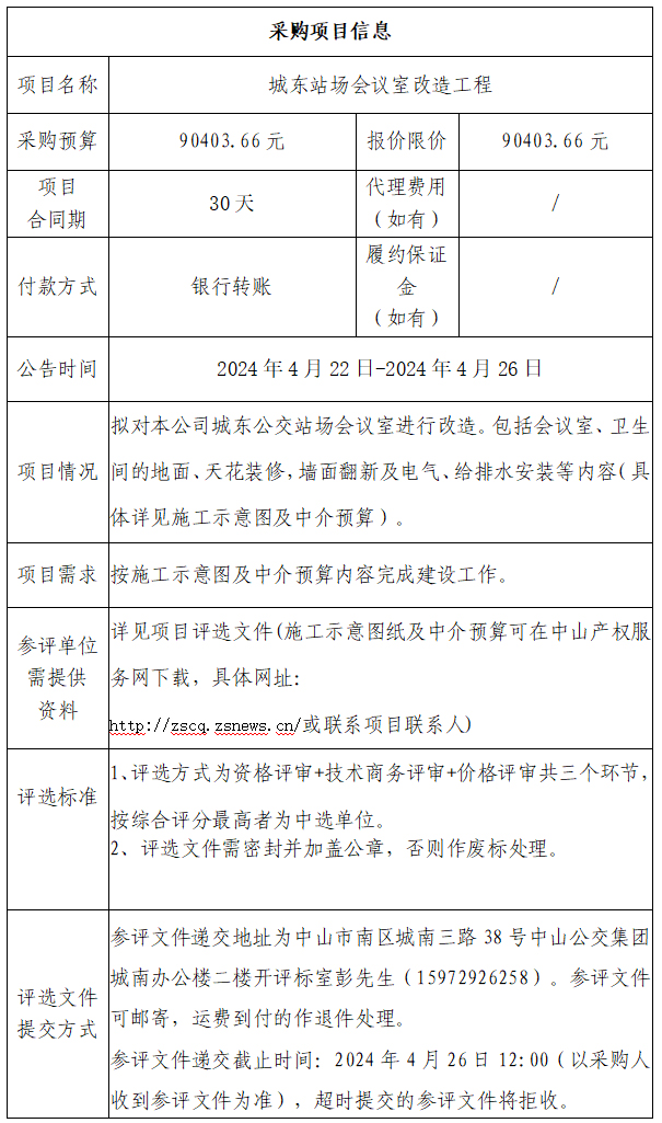 中山市公共交通运输集团有限公司城东站场会议室改造工程