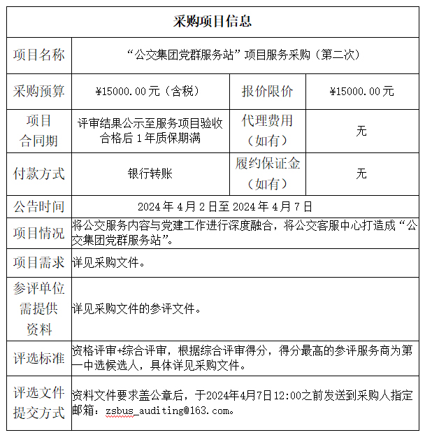“公交集团党群服务站”项目服务(第二次)(采购文件)