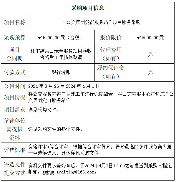 中山市公共交通运输集团有限公司“公交集团党群服务站”项目服务采购